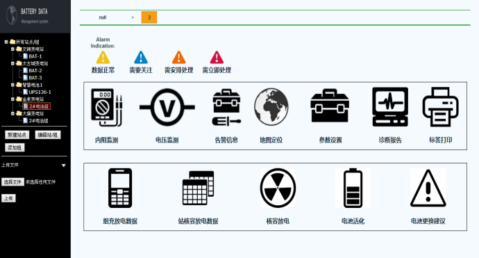 云服务器应用,集中解决了大量蓄电池监测数据的存储问题,形成蓄电池监测管理的大数据,而大数据(big data)无法在一定时间范围内用常规软件工具进行捕捉、管理和处理的数据集合。而对大数据处理是传统BMS所不具备的能力。云计算技术应用,可以解决蓄电池大数据挖掘,分析等难题,实现纵向横向数据分析分析。横向,可以对比同组各节电池的均衡性,纵向可以通过历史数据的挖掘,分析单体电池参数的变化趋势,分析其全寿命周期内的失效模式。有了强大的数据分析平台支持,极大提高电池在运维管理水平,可以有效做出相应的电池诊断维护策略,包括电池开路预测、失容、失水、盐化等预测,均衡策略,梯次利用策略等,极富友好型终端应用程序,功能清晰,数据分析展示多样化,PC终端可以提供电子表格下载或者PDF格式文档下载。