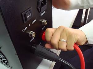 连接放电电缆和电压测试线时,注意安全,防止触电和短路的发生!