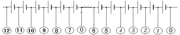 因为一个采集盒能接的电池数有限,当电池数量多余,只有最后一个采集盒的接法不同,其它采集盒接法按图3.3接即可。如下图3.4所示,最后一个采集盒的接法应该是,最后一条线M号(采集线上所标的最大的一个数字)接在最后一个电池(N号)的正极,第M-1号线接在前一个电池(N-1号)电池的正极,如此类推直至接完此采集盒的其他线。下面以12V电池为列(2V、4V、6V同理),接线方法如下: