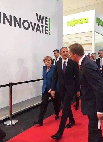 我司非常荣幸能够参加2016年4月25- 29日为期5天的 Hanover Messe——德国汉诺威工业博览会。在本次博览会上,我们现场观看了,德国总理默克尔和美国总统奥巴马在汉诺威工业博览会上共同体验VR眼镜。这一幕准确描绘了德国和美国在探索工业4.0的道路上建立的密切合作关系。同时我们也深切感受到工业4.0的大风向,而我司的产品也顺应工业4.0,陆续研发出符合工业4.0和互联网+时代的高新产品。